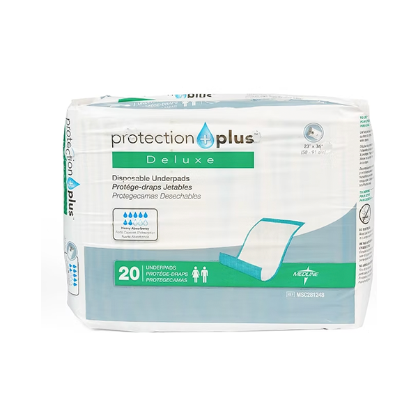 • Disposable underpads feature a combination fluff and polymer core for high absorbency and odor control